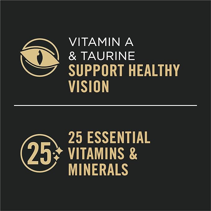 - Gravy cat food made with vitamin A and taurine to support healthy vision