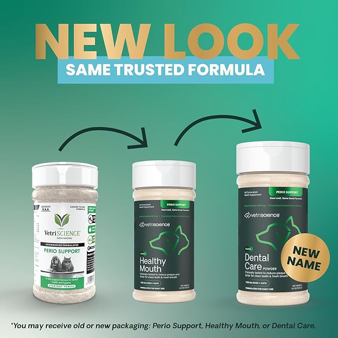 - Advanced Dental Formula for Dogs and Cats: Dental Care (previously Perio Support) helps support clean teeth, fresh breath, and healthy, strong gums by reducing buildup of bad bacteria while encouraging the growth of good bacteria - no toothbrush required