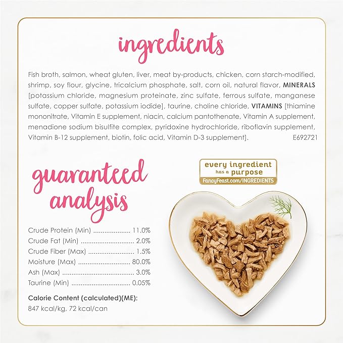 - Crafted with real salmon in a light, savory gravy for cats