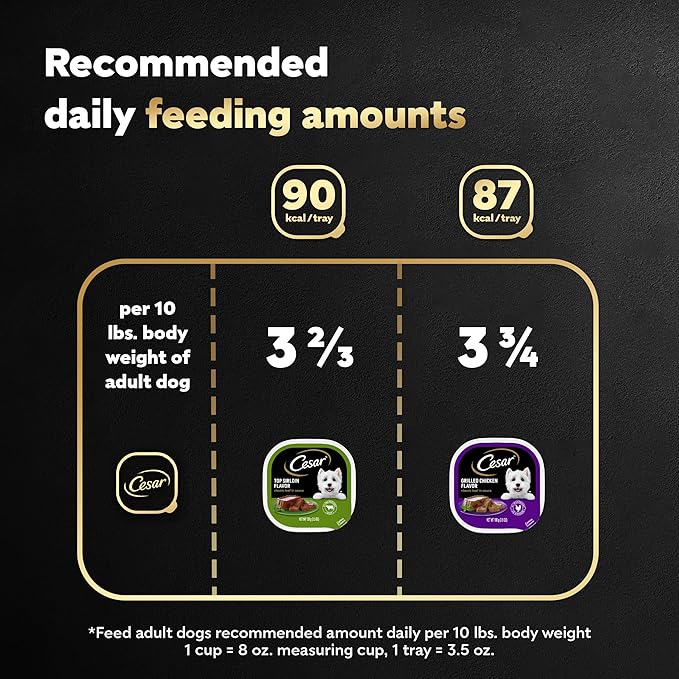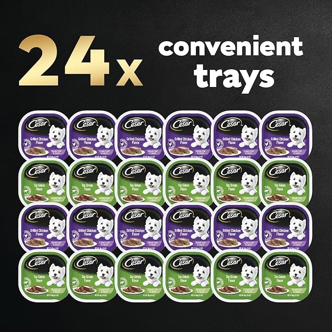 Cesar Wet Dog Food Classic Loaf in Sauce Top Sirloin & Grilled Chicken Flavors Variety Pack, 3.5 oz. Easy Peel Trays, (12 Count, Pack of 2)