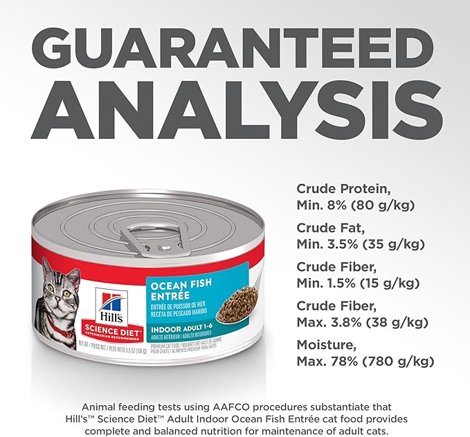 Hill's Science Diet Indoor, Adult 1-6, Easy Litter Box Cleanup, Wet Cat Food, Ocean Fish Minced, 5.5 oz Can, Case of 24