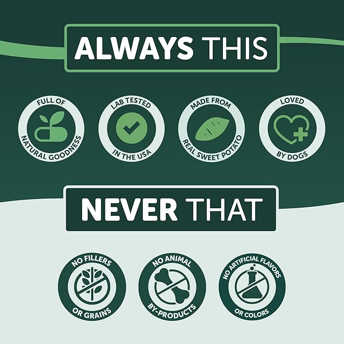 - NUTRITIOUS - As nourishing as they are delicious, these treats are naturally packed with vitamin A to help to support healthy skin and a shiny coat. Sweet potatoes also contain a high level of Beta Carotene to help to support vision, and provide vital dietary fiber and antioxidants to help support your dog's digestion and overall good health.