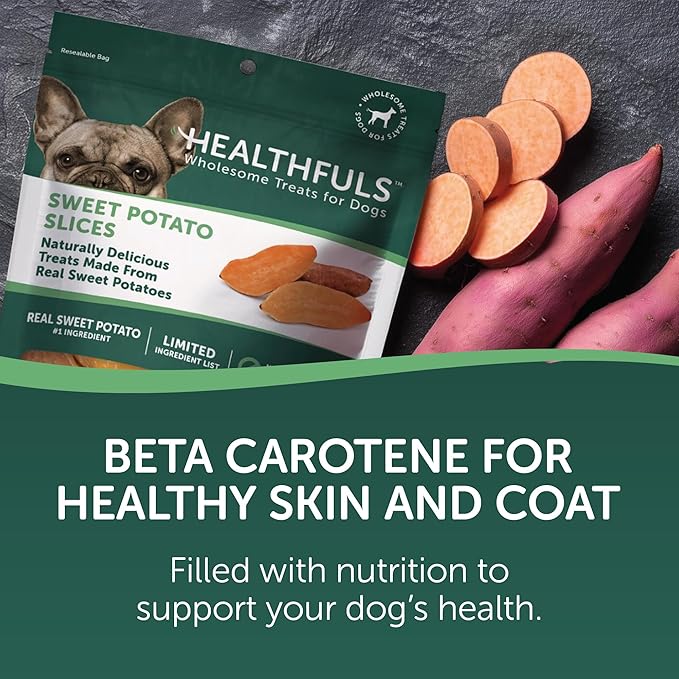 - DOG TREATS - Healthfuls Sweet Potato Slices are packed with nutritious goodness and a natural, sweet flavor your pup will love. Made with real dried sweet potatoes, these treats are a great training reward or low-fat snack.