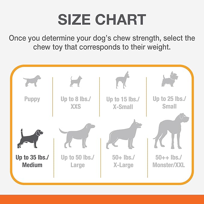 - FOR MEDIUM DOGS - Size Wolf chew toys intended for dogs up to 35 pounds
