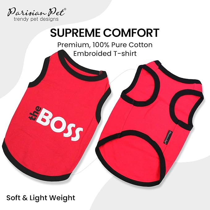 Parisian Pet Dog T-Shirt with Embroidered 'The Boss' Word - Lightweight Dogs Clothes - Sleeveless Dog Outfit Boss - Shirt for Large Dogs, XL