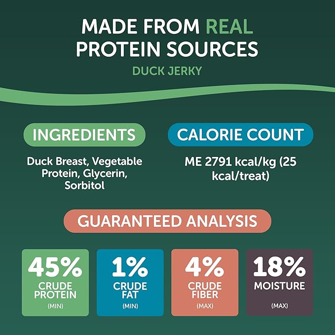 - Only 2 ingredients duck breast with a little vegetable glycerin to help preserve freshness.