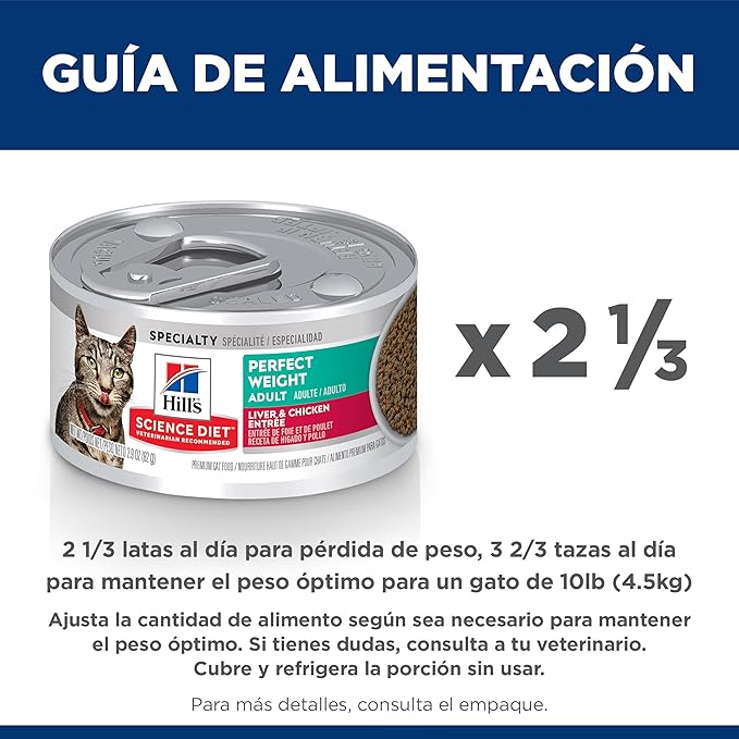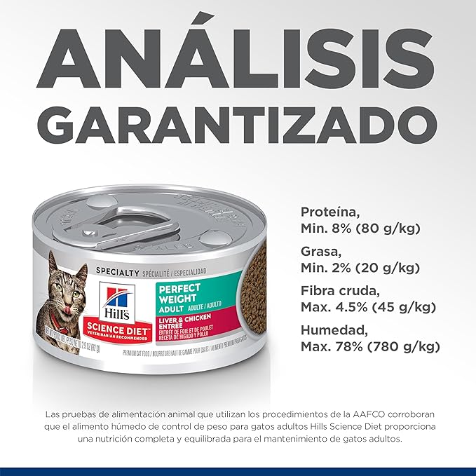 Hill's Science Diet Perfect Weight, Adult 1-6, Weight Management Support, Wet Cat Food, Liver & Chicken Minced, 2.9 oz Can, Case of 24