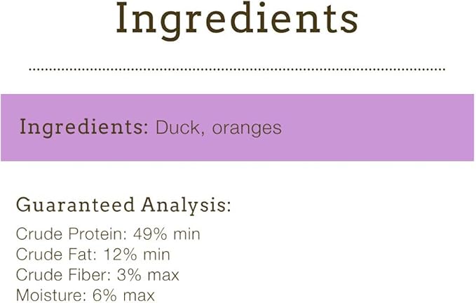 - LIMITED INGREDIENT - ONLY 1-4 PER RECIPE - As pet parents we have become accustomed to lengthy ingredient decks with obscure names that no one can pronounce. We strongly believe that food is the foundation of health and our pets deserve better! Our ingredient deck says it all - duck with oranges. That’s 100% it!