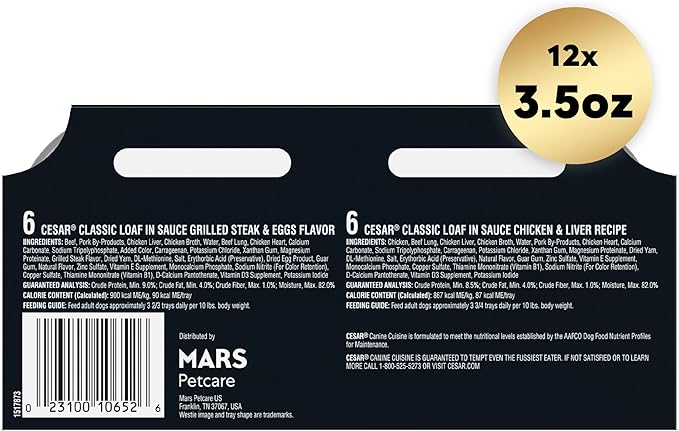 - Peel Away Seals: Cesar Classic Loafs gourmet soft dog food is served in convenient trays with easy, peel away seals