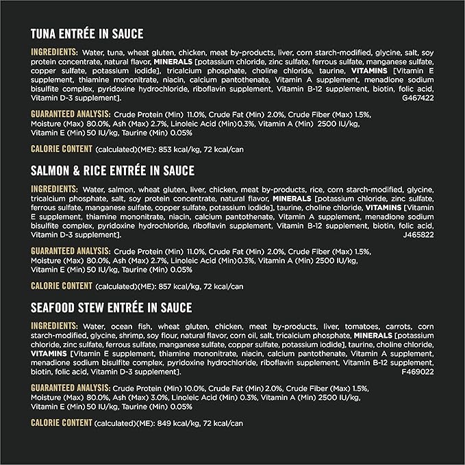 - Wet cat food in gravy provides 100 percent complete and balanced nutrition for adult cats and high protein to maintain lean muscle