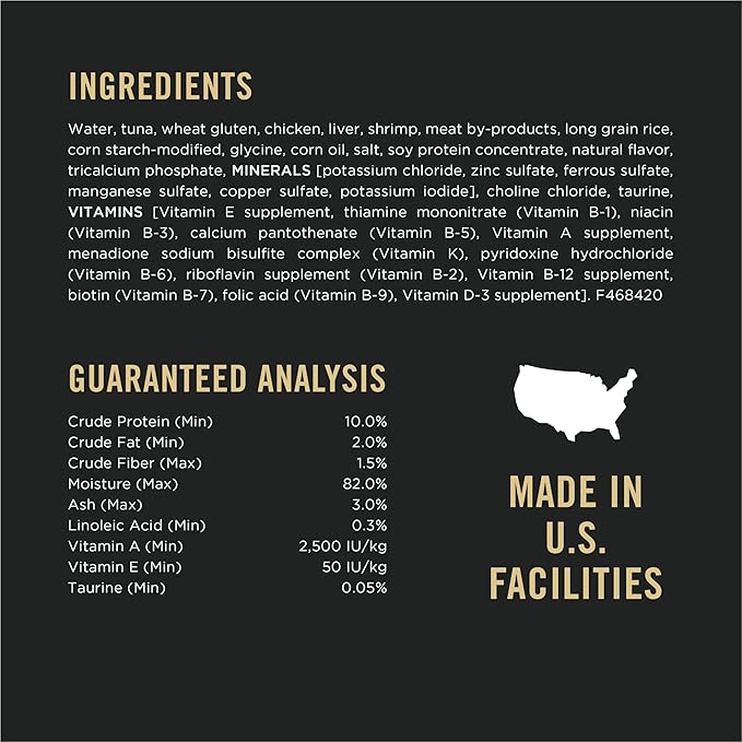 Purina Pro Plan Gravy, High Protein Wet Cat Food, COMPLETE ESSENTIALS Tuna, Shrimp & Rice Entree in Sauce - (Pack of 24) 3 oz. Pull-Top Cans