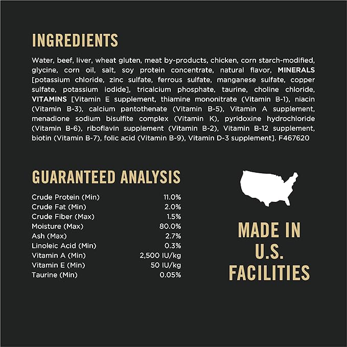 - Premium wet cat food in gravy proudly manufactured at Purina-owned, U.S. facilities