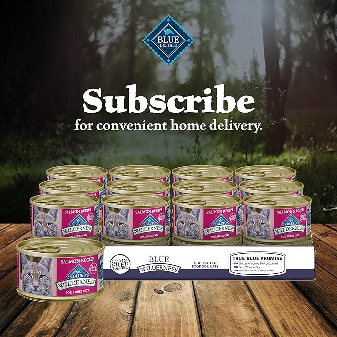 - Contains Twenty-four (24) 3-oz cans of BLUE Wilderness High Protein Grain Free, Natural Adult Pate Wet Cat Food, Salmon