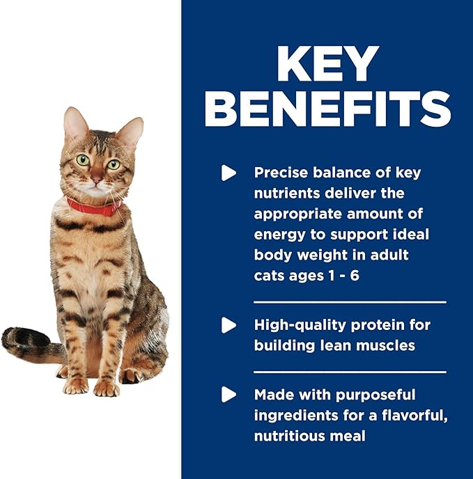 - Precise balance of key nutrients deliver the appropriate amount of energy to support ideal body weight in adult cats