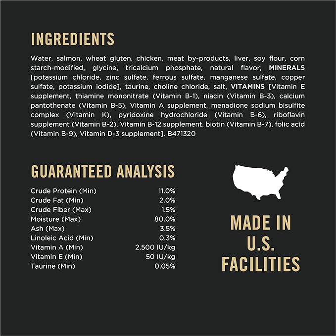 - Soft cat food pate made at Purina-owned, U.S. facilities