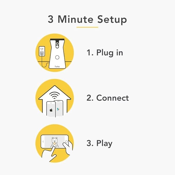 - EASY SETUP, SECURE CONNECTION: 1) Plug in the power cord. 2) Place the Furbo within 5 ft of your WiFi router. 3) Download the Furbo app 4) Connect to your home WiFi 2.4GHz network (does not support 5GHz WiFi). Enable 2-Step Verification to keep your account secure. Furbo Cameras uses bank-level encryption to ensure your data remains private.
