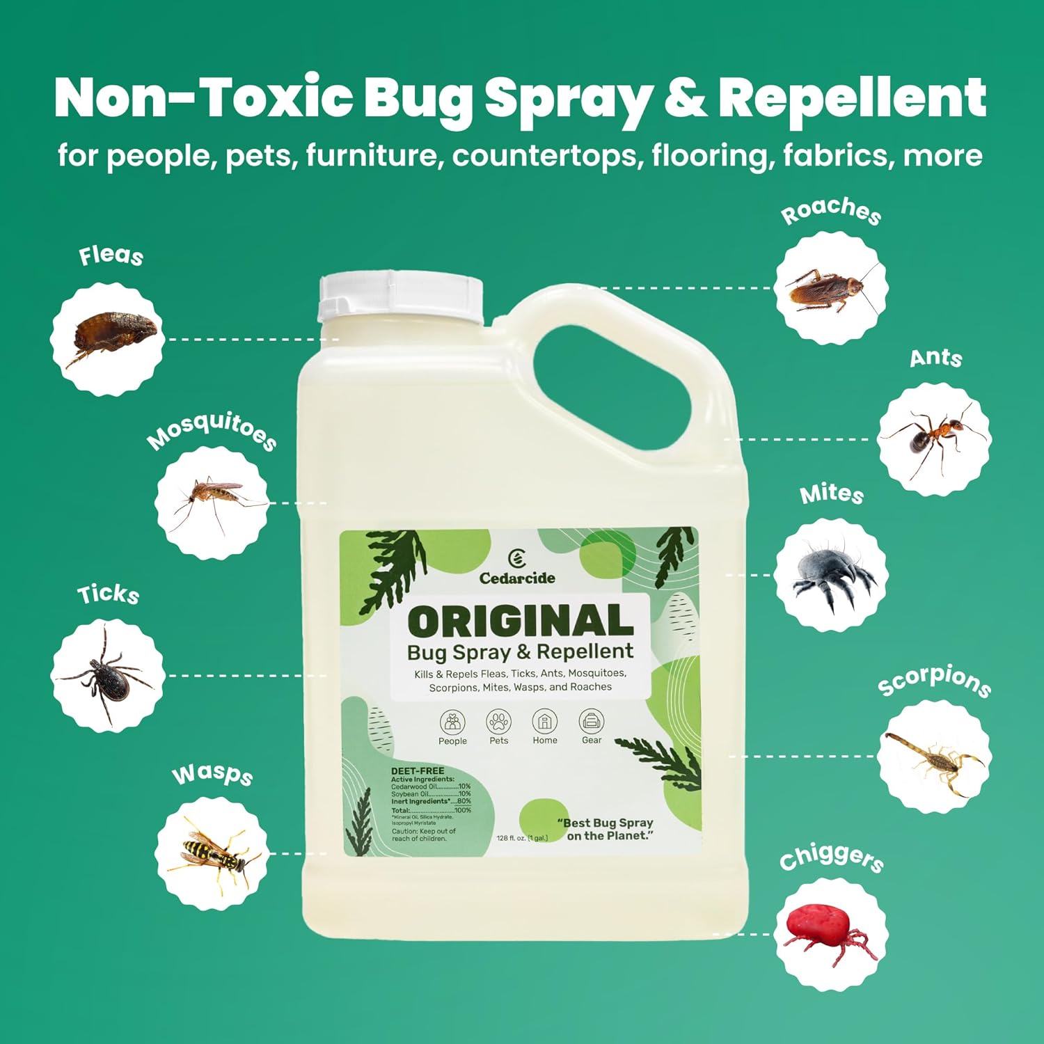Cedarcide Original Bug Spray | Repel & Kill Fleas, Ticks, Mosquitoes, Mites, Ants & Chiggers | for use on People, Pets & Home | Natural Cedar Oil | Eco-Friendly | Gallon