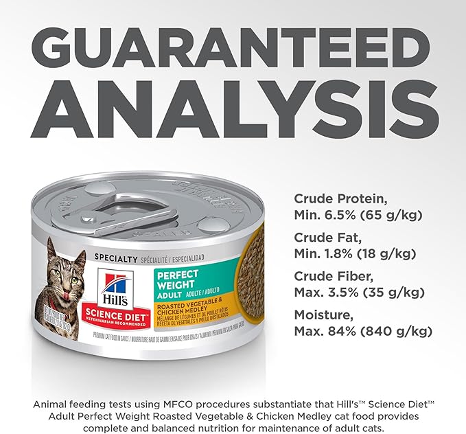 Hill's Science Diet Perfect Weight, Adult 1-6, Weight Management Support, Wet Cat Food, Chicken & Roasted Vegetables Stew, 2.9 oz Can, Case of 24