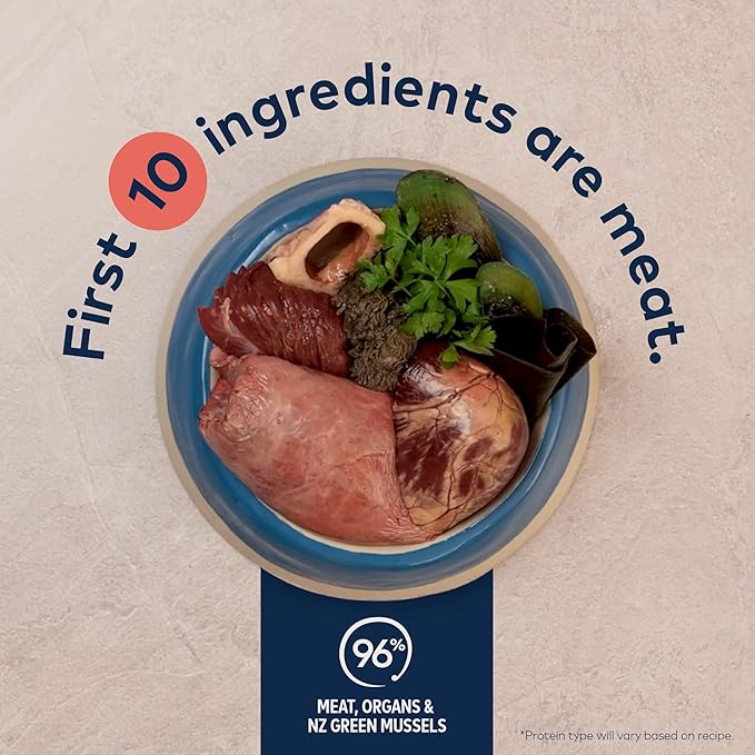 - HIGH PROTEIN, NUTRIENT DENSE: Featuring wild-caught Mackerel and free-range Lamb, Organs, Bone, and New Zealand Green Mussels, this grain-free dog food delivers nutrition with a mouth-watering taste for all dogs. Gentle air dried processing retains the goodness of the raw ingredients. This food offers stimulating crunchy texture small enough for puppy food but soft enough for senior dog food.