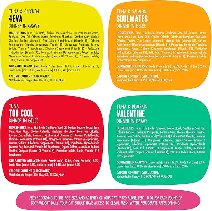 - Batch O Besties Variety Pack, Four of our most popular recipes with wild caught skipjack tuna in a delicious gravy and gelee, 3oz Can, Pack of 12