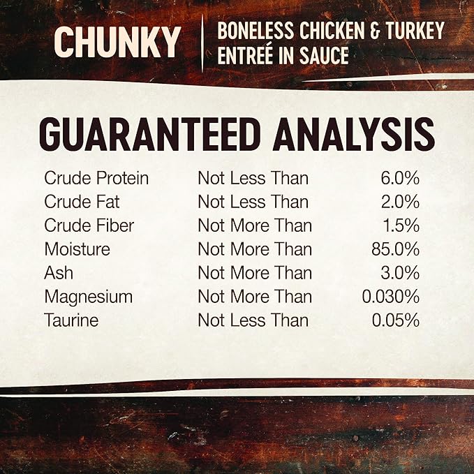 - CHUNKY CHICKEN AND TURKEY: All-natural wet food delivers what your cat craves. Protein-rich recipe features chunks of chicken and turkey in a delicious sauce that supports daily hydration. We recommend serving at room temperature for maximum palatability.