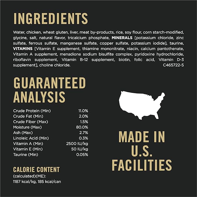 - Premium wet cat food in gravy proudly manufactured at Purina-owned, U.S. facilities