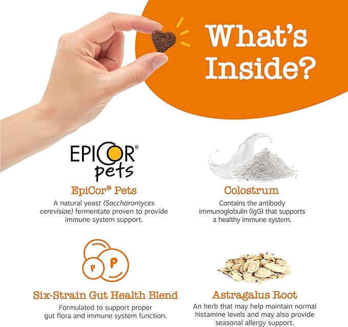 - IMMUNE SYSTEM SUPPORT: These allergy chews for dogs and itchy skin feature EpiCor Pets, a whole food yeast fermentate, to help strengthen your dog's immune system for healthy responses