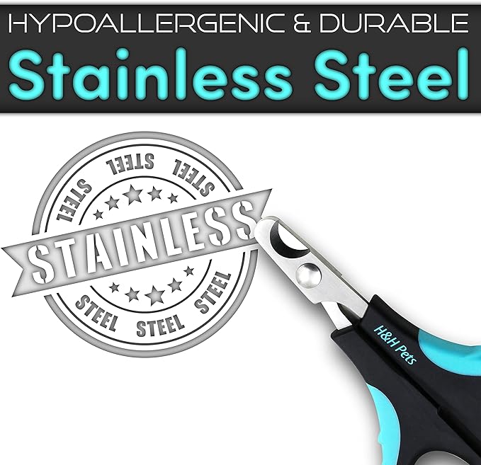 - HIGH QUALITY AND EASY TO USE DESIGN β The cat nail clipper's stainless steel blade is hypoallergenic and durable. The handle is finished with a slip-proof coating that allows you to securely and comfortably grip them in order to prevent painful accidents. Detailed instruction is printed on the back of the package.