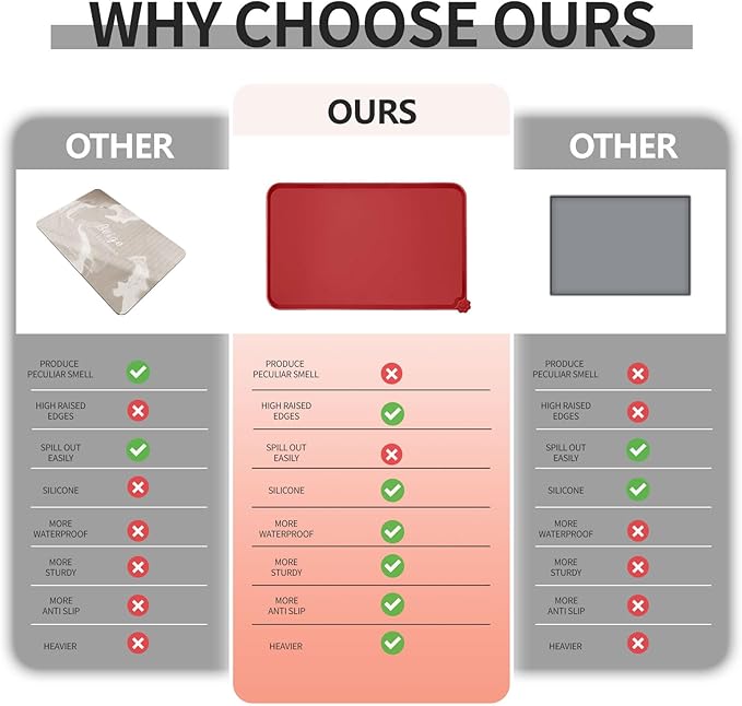 - Anti-slip design: our non-slip pet feeding mat ensures stability for your pet's bowl, preventing any water stains or spills on the floor. Enjoy peace of mind when feeding your pet, knowing that their food stays in place