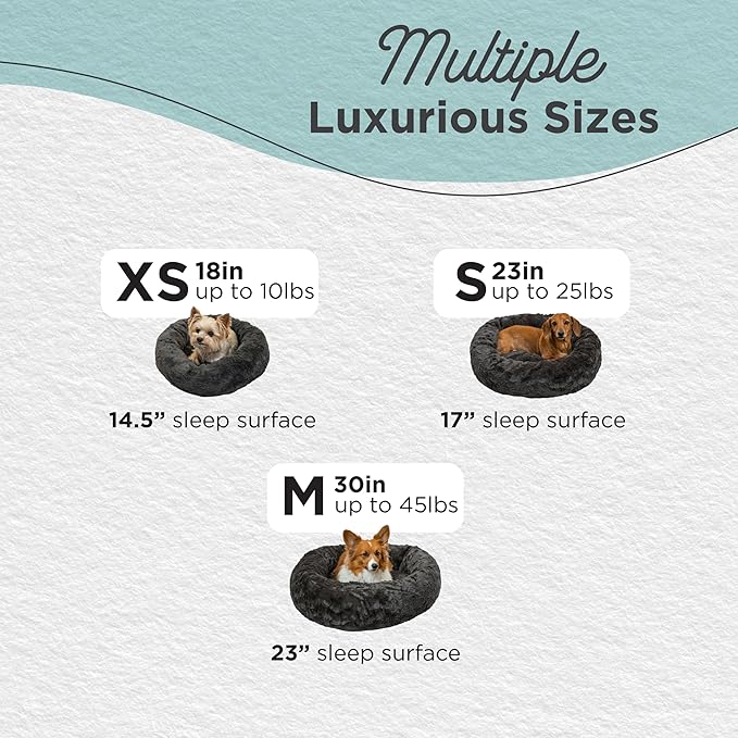 - Calming Dog Bed: 23-inch donut cuddler provides a cozy haven designed to help soothe anxiety and stress in small dogs and cats up to 25 lbs; ideal for breeds such as French Bulldogs, Dachshunds, Yorkies, Terriers, Shih Tzus, Chihuahuas, and toy breeds