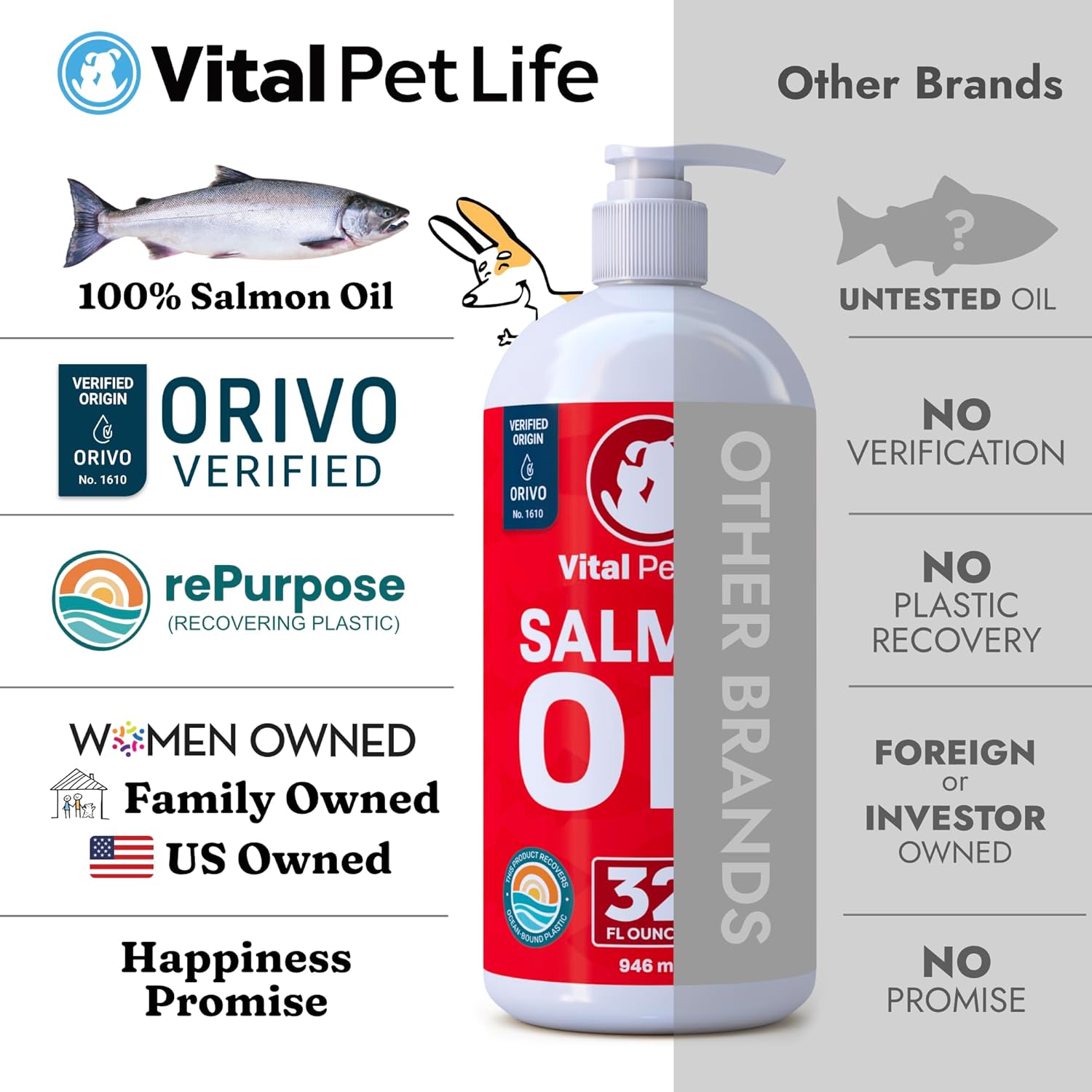 Salmon Oil for Dogs & Cats - Healthy Skin & Coat, Fish Oil, Omega 3 EPA DHA, Liquid Food Supplement for Pets, All Natural, Supports Joint & Bone Health, Natural Allergy & Inflammation Defense, 32 oz