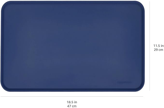 Amazon Basics Waterproof Anti-Slip Silicone Cat & Dog Food Mat, Pet Mats with Raised Edges for Food and Water Bowl to Protect Floors, 18.5 x 11.5 Inches, Blue, Solid