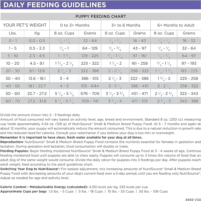 - As a member of our grain inclusive series of dog foods, NutriSource Small & Medium Breed Puppy Food is formulated to meet AAFCO guidelines for all life stages