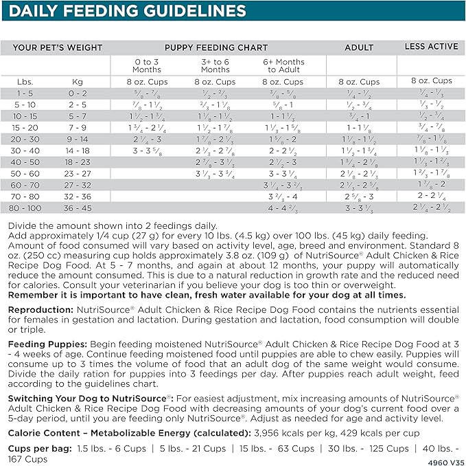 NutriSource Adult Dog Food, Made with Chicken and Rice, with Wholesome Grains, 30LB, Dry Dog Food