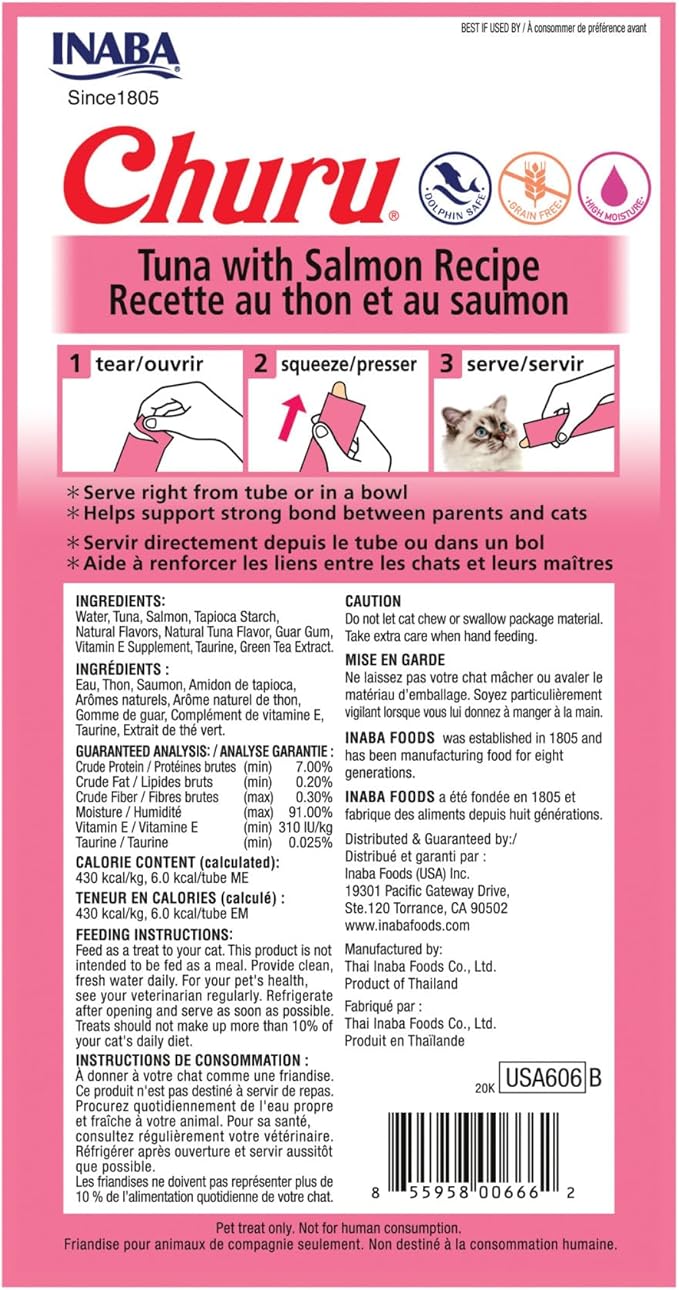 Churu Tuna with Salmon Recipe Lickable Creamy Purée Cat Treats 24 Tubes