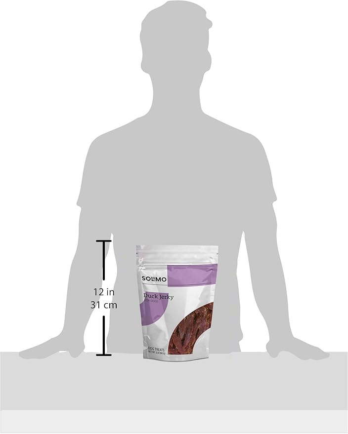 - Includes one 2 lb bag of Solimo duck jerky dog treats