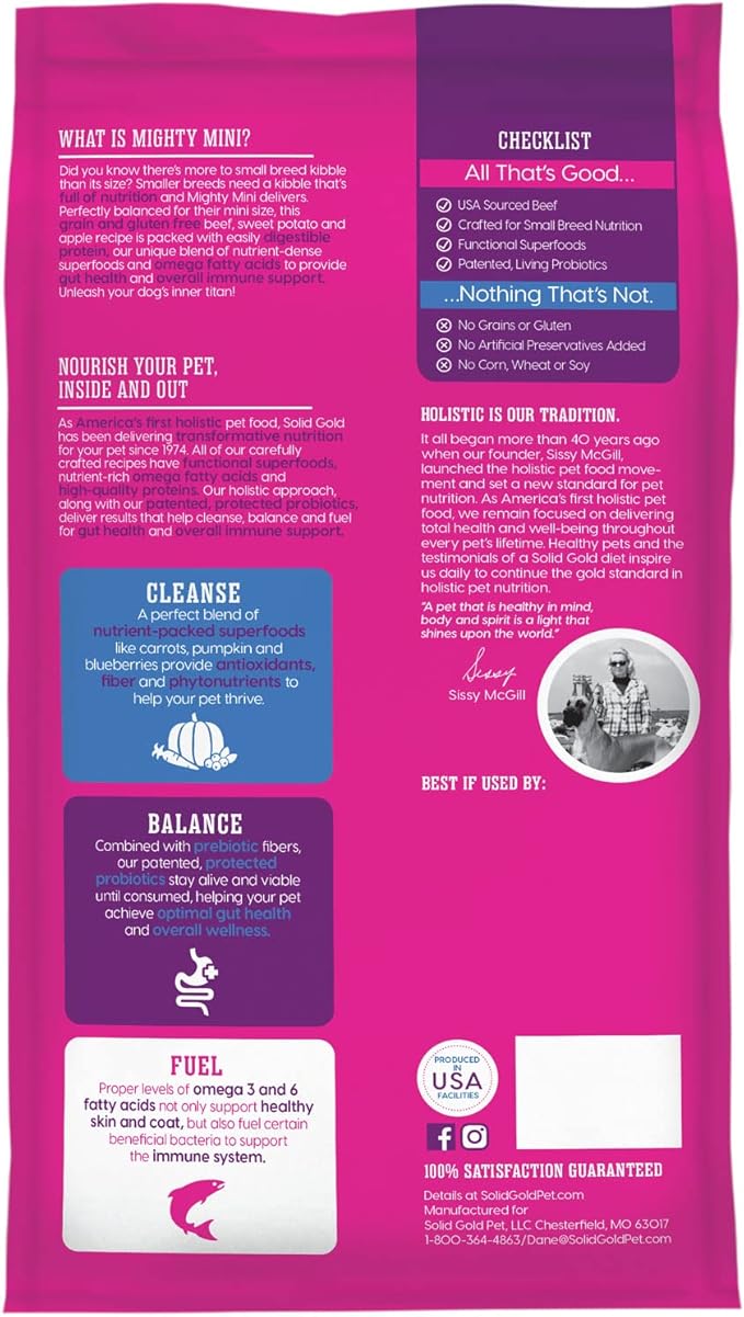 Solid Gold Toy & Small Breed Dry Dog Food Small Bites – Real Beef, Grain Free, Gluten Free, High Fiber Kibble with Probiotics for Gut Health & Digestion Support – Healthy Dog Food All Ages – 11LB