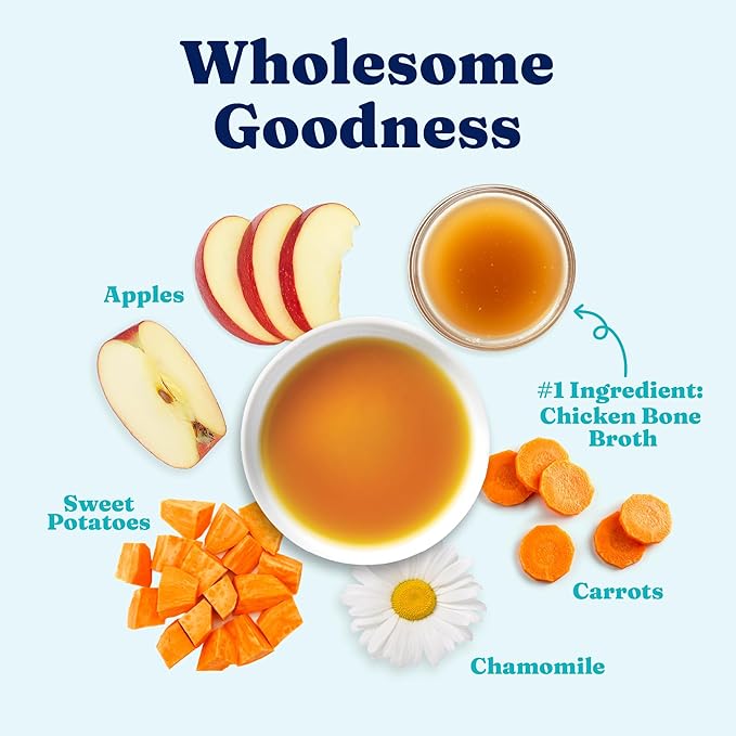 - Limited Ingredient Dog Treats – With real chicken bone broth, carrots, sweet potato & turmeric, this wet dog food toppers for dry food supports gut health, hydration & overall wellness—ideal for dogs needing a flavorful nutritional boost at meal time