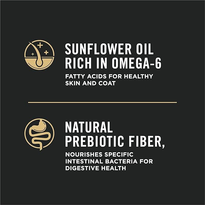 - Sunflower oil rich in omega-6 fatty acids for healthy skin and coat. Natural prebiotic fiber nourishes specific intestinal bacteria for digestive health