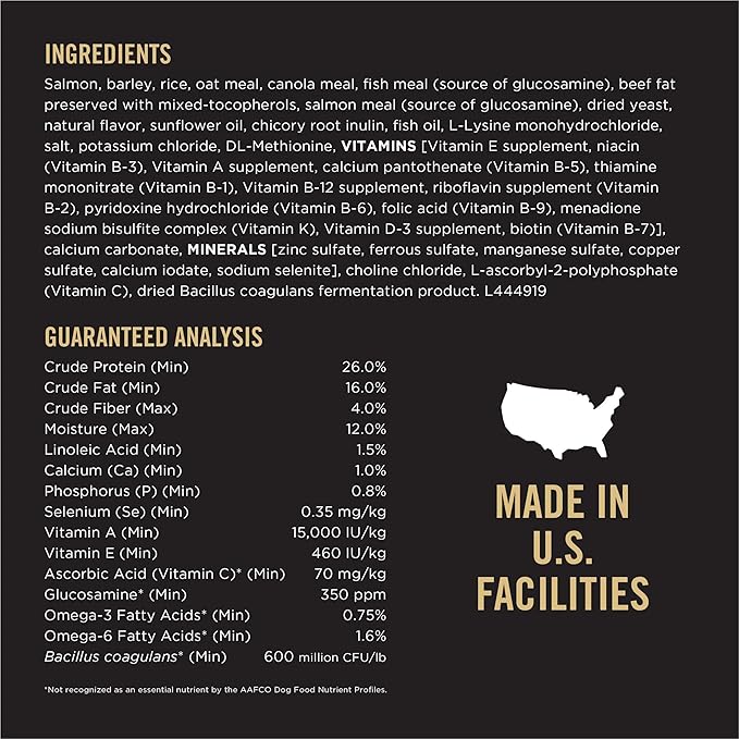 - Oat meal is easily digestible and gentle on the digestive system. High protein formula, with real salmon as the first ingredient