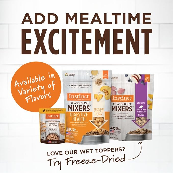 - GRAIN FREE CAT FOOD TOPPER VARIETY PACK: Instinct Healthy Cravings wet cat food topper variety pack contains the perfect selection of natural cat food toppers or cat treats for picky kitties. Add the delicious taste and variety your cats crave.