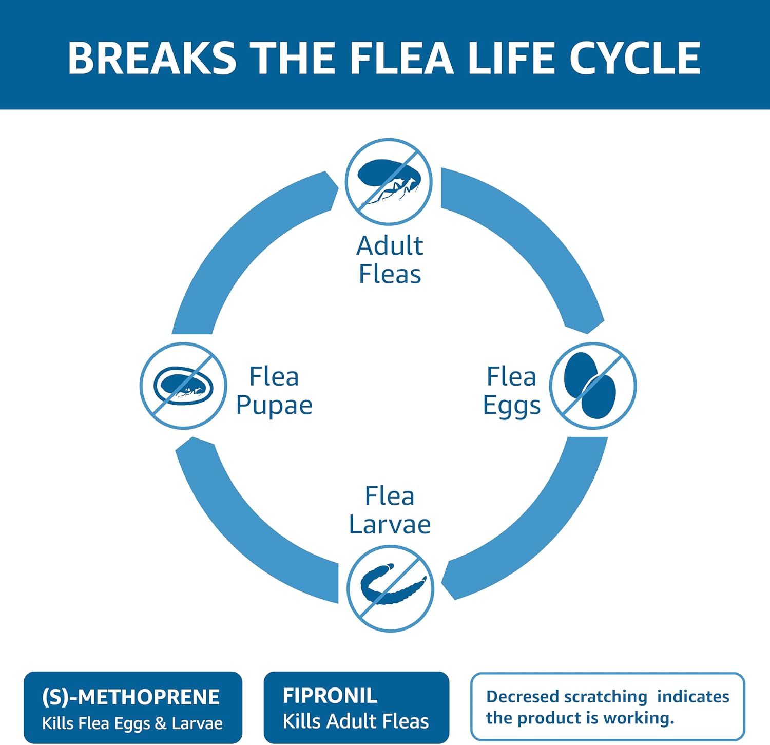 - Active ingredients Fipronil and (s)-methoprene prevent flea infestations by killing flea eggs, flea larvae, mosquitos, biting flies and chewing lice
