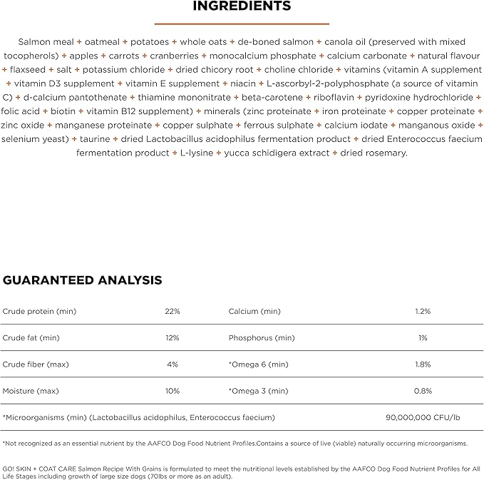 Go! Solutions Skin + Coat Care, Dry Dog Food, Salmon Recipe with Grains, 3.5 lb Bag