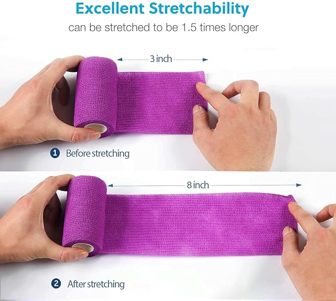 - [LIGHTWEIGHT BREATHABLE MATERIAL]: It is made from natural rubber latex. Porous fabric allows for ventilation so your pet’s skin can breathe freely underneath, which is good for the pet’s skin and helps healing better and faster. Each roll is individually wrapped in clear cellophane, clean and hygienic.