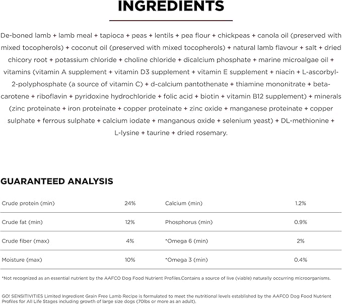Go! Solutions Sensitivities Limited Ingredients, Grain-Free Dry Dog Food, Lamb Recipe for Sensitive Stomach, 12 lb Bag