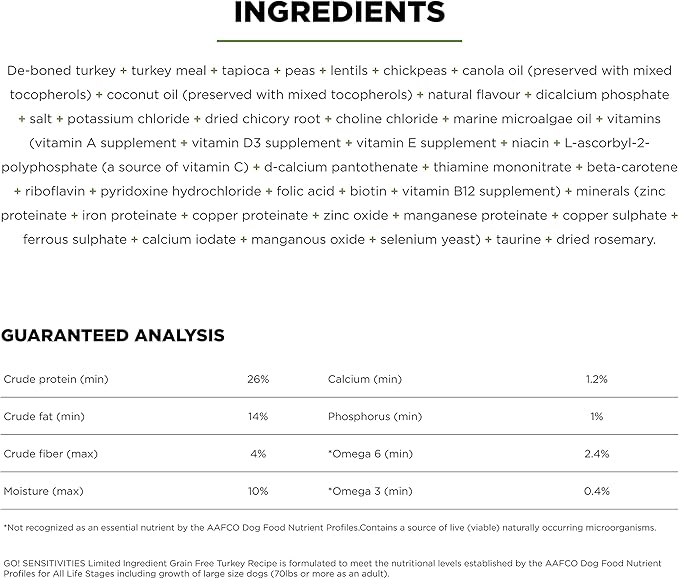 Go! Solutions Sensitivities Limited Ingredients, Grain-Free Dry Dog Food, Turkey Recipe for Sensitive Stomach, 22 lb Bag