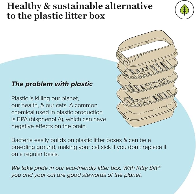 Kitty Sift (Set of 1 Litter Box, 3 Sifting Liners, & 1 Shield) Sustainable, Clean, Sifting, Disposable Cat Litter Box with Shield - Large, 5-Set Kit