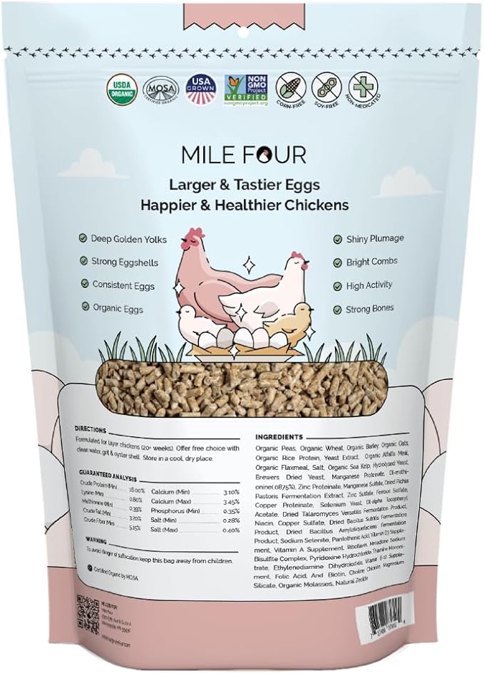 - HEALTHIER & HAPPIER CHICKENS: Shiney plumage, bright colored combs, strong, confident chickens with high activity level. Quality organic chicken feed formulated with 16% protein, essential vitamins & minerals for optimal health, nutrition & egg production
