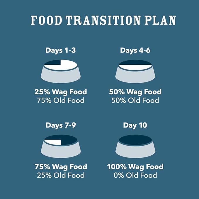 - Gradual transitioning is important to help avoid dietary upsets. Please see instructions below or on the bag.