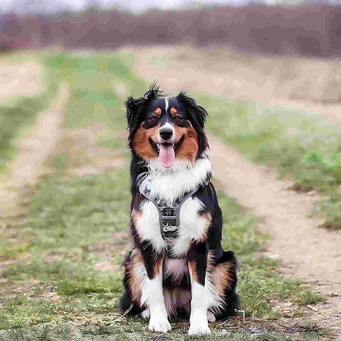 Auroth Tactical Dog Training Harness No Pulling Front Clip Leash Adhesion Reflective K9 Pet Working Vest Easy Control for Small Medium Large Dogs Grey Camo S